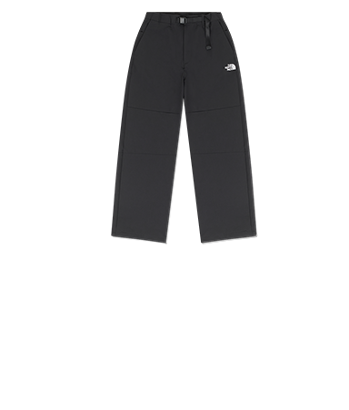 下身搭配一體式腰帶與按扣口袋的防潑水長褲