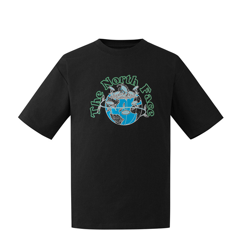 • Rubber print graphic of sunflower and earth at chest, with a thick rubber print of logo on top